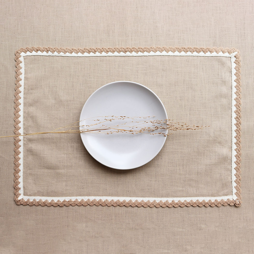 Here you will find tablecloths in colored and modern linen, personalized napkins with initials to play with for the mix and match.